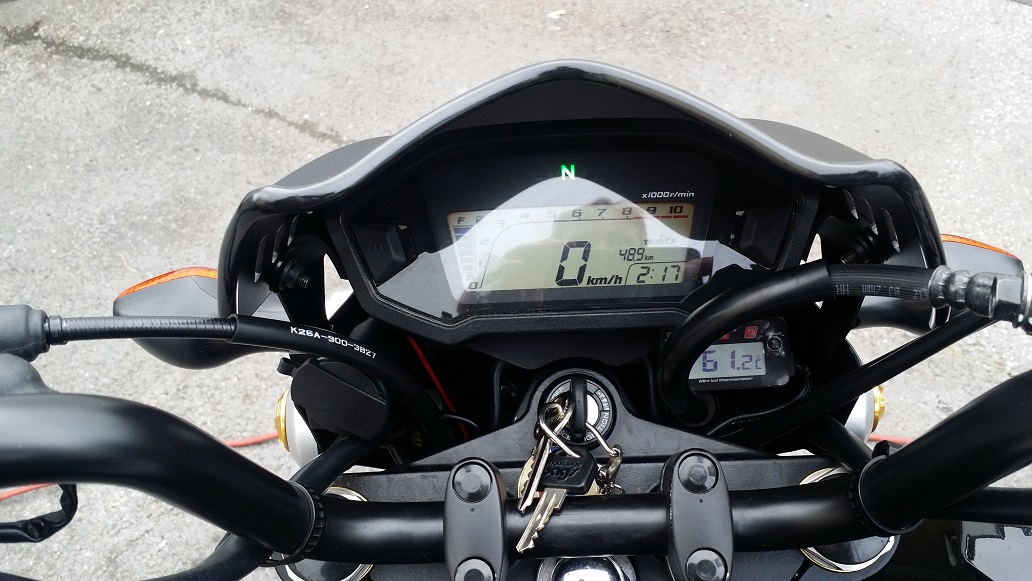 Der Vorteil vom Tacho er kann je nach Übersetzung angepasst werden und statt den Ölthermometer in der Lenkerklemme kommt eine Lambda-mess Amatur von Koso rein