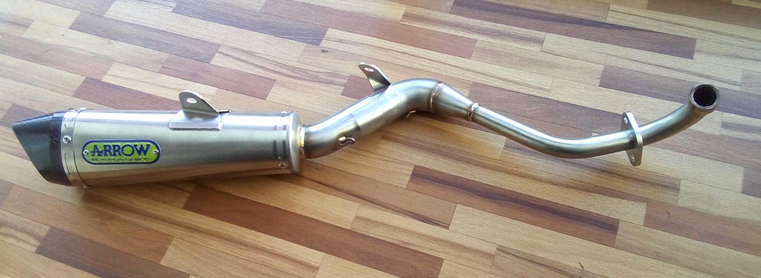 Der Krümmer scheint der exakt gleiche wie der Arrow zu sein. Der Sound ist nicht zu laut und sehr ausgewogen meiner Meinung nach. Nach dem Testhören habe ich dann mal den Homologationszettel durchgelesen und siehe da, die MSX ist nicht drauf! Danach habe ich mir dann die Ebay Anzeige nochmal angeschaut, auf welcher auch ein anderer Auspuff zu sehen ist. Dafür, dass es aber anscheinend nicht der richtige Auspuff ist, passt er viel zu gut. Der Winkel zur "Motorradlinie" stimmt und die Spannfeder passt auch. Den Verkäufer hab ich bereits kontaktiert und gefragt, ob es vielleicht eine neue Version des Homologations-Schreibens gibt, leider gab es da noch keine kompetente Antwort. (liegt wahrscheinlich auch an der Sprachbarriere) Den Auspuff will ich jetzt nicht unbedingt wieder zurück schicken, da die Versandkosten für Sperrgut nach Italien bestimmt nicht günstig sind und ob ich mein Geld zurück bekomme steht dann auch noch nicht fest. Ich denke ich werde ihn für's erste behalten und auch damit fahren. Die E-Nummer ist ja eingestanzt und das Homologations-Schreiben muss man ja nicht mitführen, insofern wird die Rennstreckenkontrolle wohl auch nicht viel unternehmen, wenn sie die E-Nummer sehen.