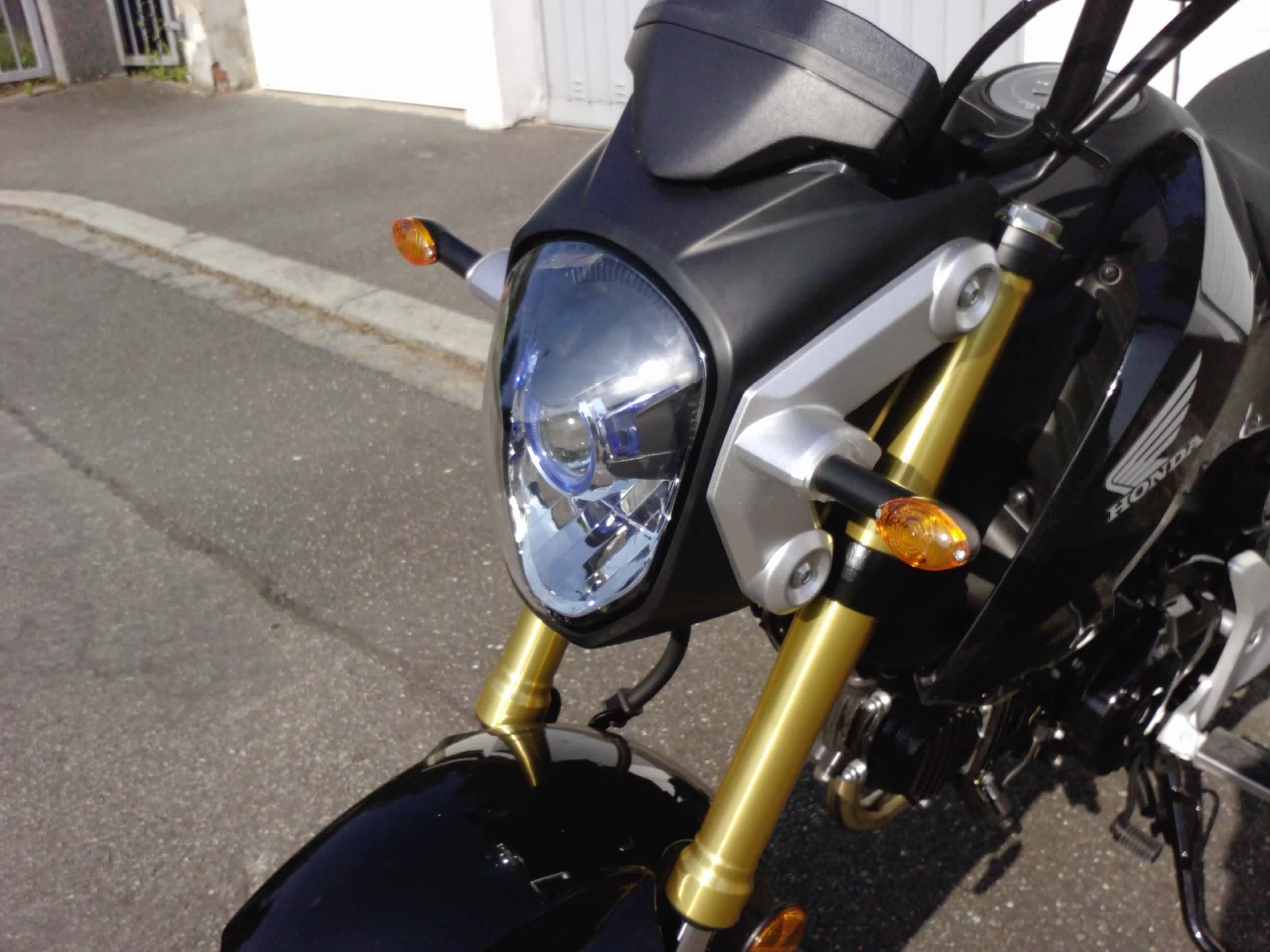seit ich die msx habe,hatte ich einige zeit investiert und n kurzes heck angebaut und n v2 a krümmer. aufkleber GROM ist in auftrag für unterm honda flügel.