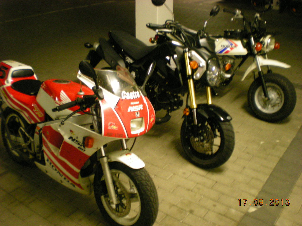 Das wären : Eine CD50 welche zur Zeit von einem Freund restauriert wird, eine SS50 , eine Monkey J1 mit Nice Motor, eine 125er Skyteam Dax und ein 110er ATC.